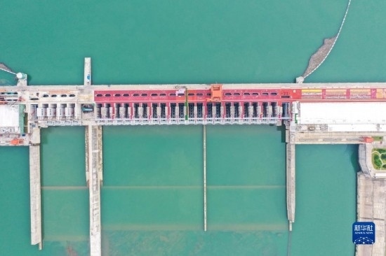 9月2日拍攝的廣西大藤峽水利樞紐泄水閘(無人機照片)。新華社記者 曹祎銘 攝
