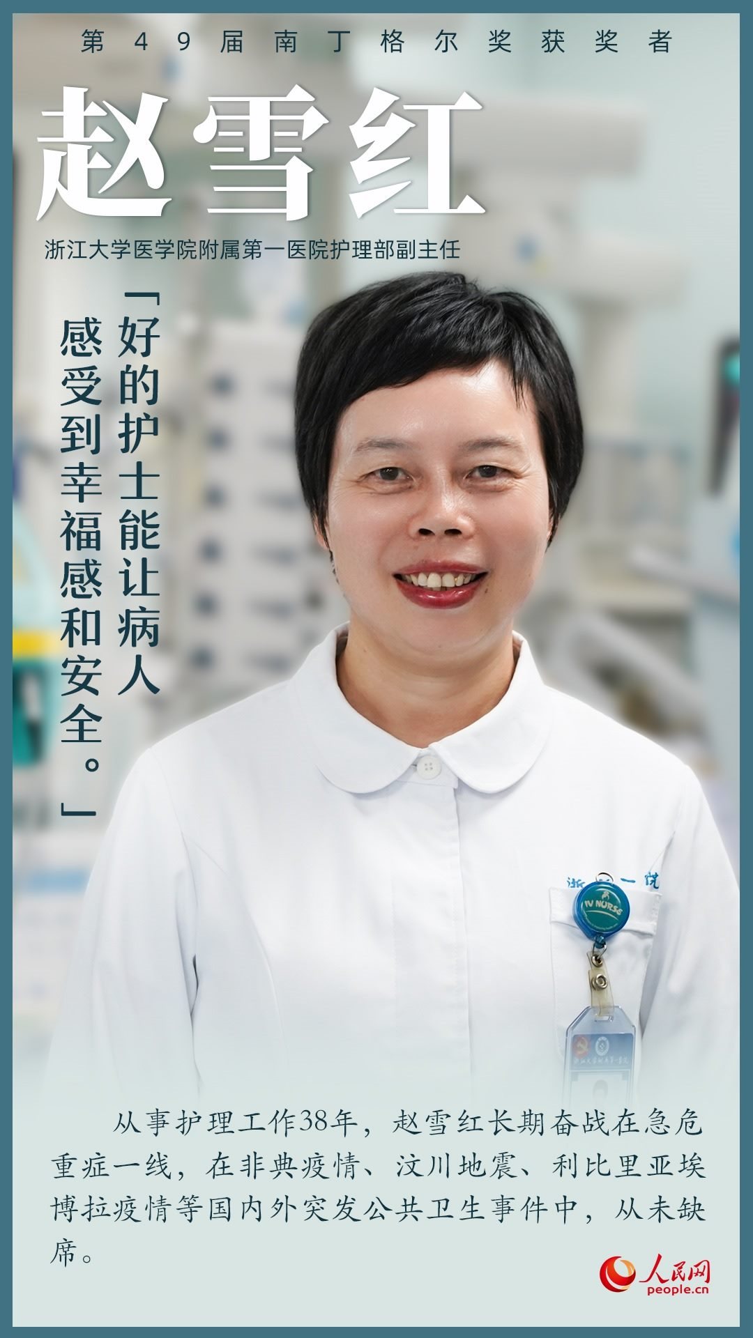 第49屆南丁格爾獎(jiǎng)?lì)C獎(jiǎng)大會(huì)9月5日上午在北京人民大會(huì)堂舉行,7名我國護(hù)理工作者獲得南丁格爾獎(jiǎng)?wù)?。她們辛勤工作在臨床第一線,全心全意為患者服務(wù),生動(dòng)詮釋了“人道、博愛、奉獻(xiàn)”的紅十字精神;她們用擔(dān)當(dāng)奏響生命之歌,用奉獻(xiàn)書寫白衣使命,在推進(jìn)健康中國建設(shè)的征程上步履不停。