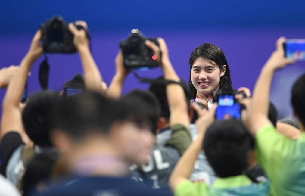 9月29日,中國(guó)選手張雨霏在賽后留影。新華社記者 黃宗治 攝