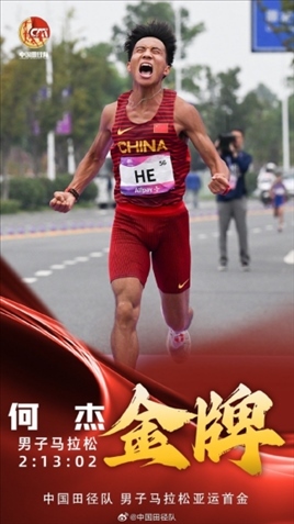 創(chuàng)造歷史!5日的杭州亞運(yùn)會(huì)馬拉松賽場(chǎng)上,中國(guó)選手何杰勇奪金牌,這是中國(guó)隊(duì)在亞運(yùn)史上首次獲得男子馬拉松金牌。