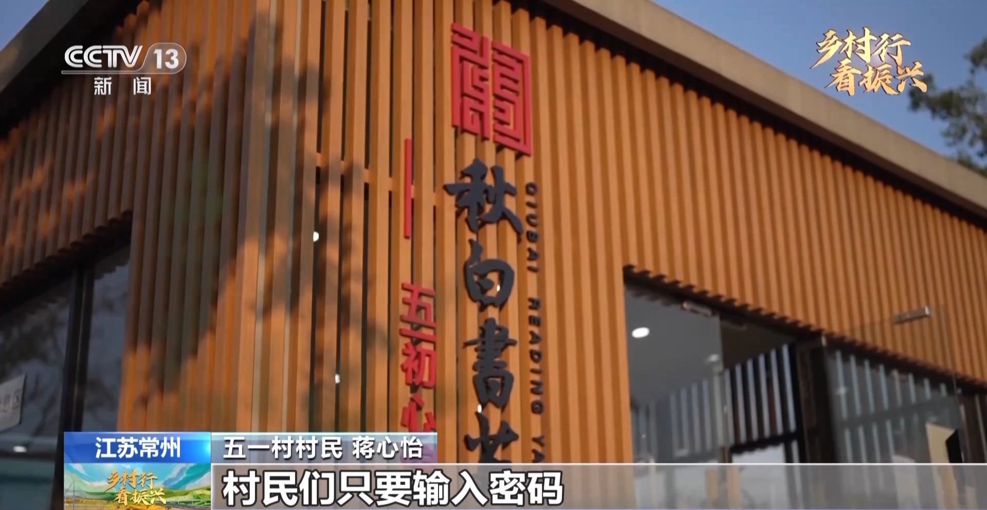 江蘇常州五一村村民 蔣心怡:我叫蔣心怡,是個土生土長的五一村人。今天我想帶大家去看看我們村的秋白書苑。這個圖書館24小時免費開放,村民們只要輸入密碼,就可自由進(jìn)出。