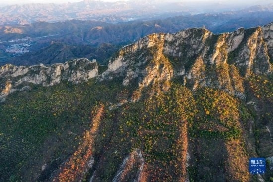 朝陽(yáng)下的司馬臺(tái)長(zhǎng)城(無(wú)人機(jī)照片,10月15日攝)。