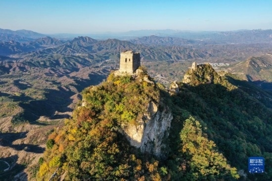 位于司馬臺(tái)長(zhǎng)城東端的“望京樓”(無(wú)人機(jī)照片,10月15日攝)。