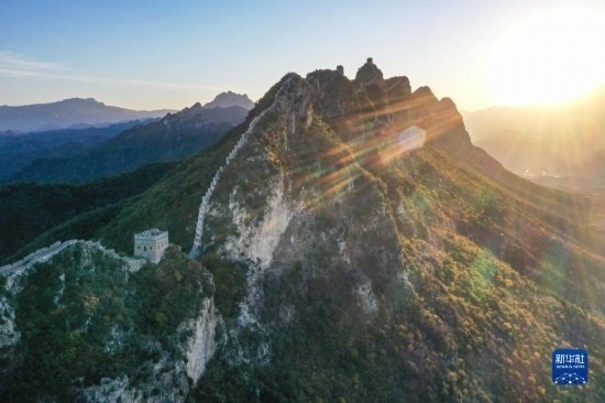 朝陽(yáng)下的司馬臺(tái)長(zhǎng)城(無(wú)人機(jī)全景照片,10月15日攝)。