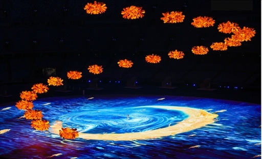 今晚的“大蓮花”,處處見桂花,時時聞得到桂花香。一朵“金桂之花”到22組金桂花團,從分散到匯聚,時而形成流水,時而形成拱橋,最終將在空中形成巨大的“金桂花冠”,向每一位運動員傳遞“逐夢折桂”的美好寓意。