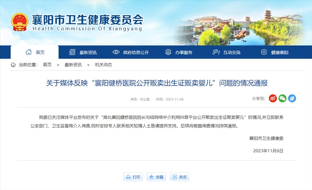 【8點(diǎn)見(jiàn)】醫(yī)院院長(zhǎng)被舉報(bào)涉嫌販賣(mài)出生證 襄陽(yáng)衛(wèi)健委通報(bào)