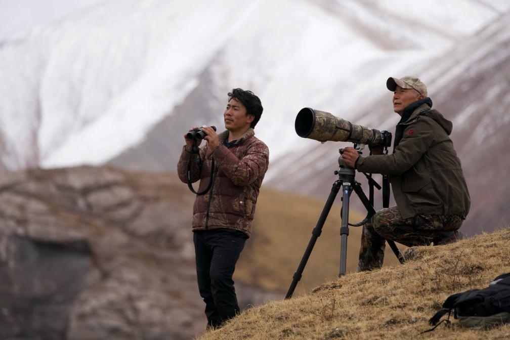 2023年2月,更求曲朋在尋找雪豹的蹤跡。新華社記者 張宏祥 攝