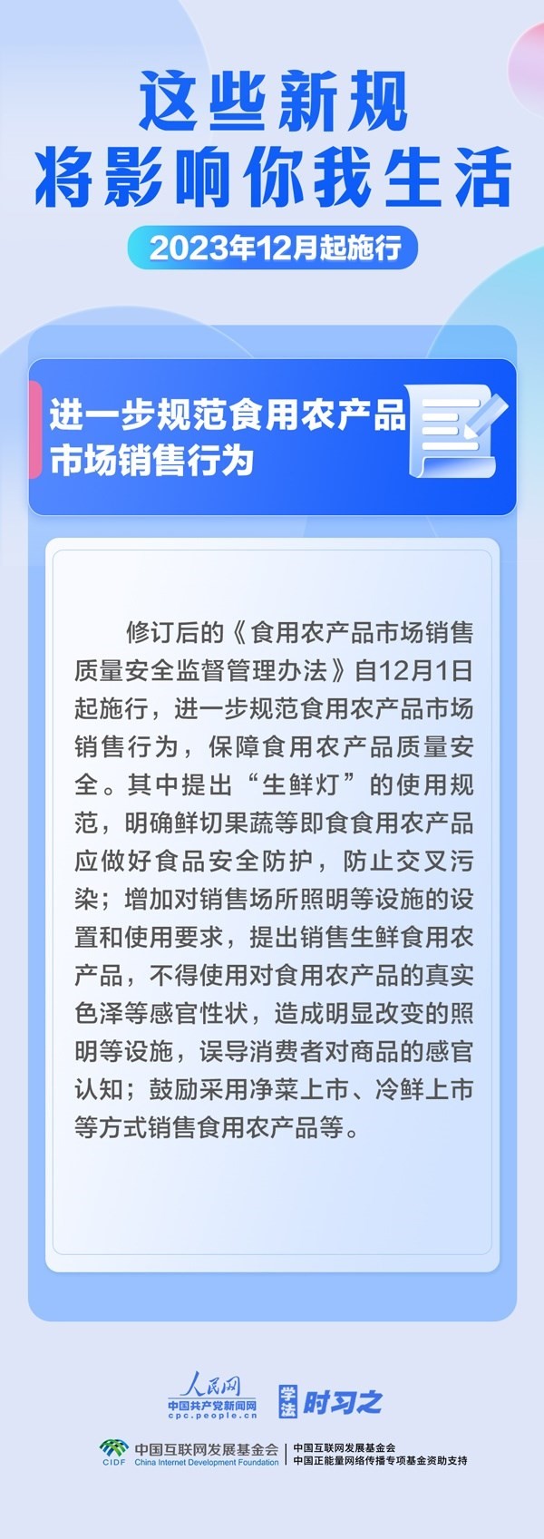 明確社保經辦便民利民要求;強化科技倫理風險防控;進一步規(guī)范食用農產品市場銷售行為……12月,這些新規(guī)施行,將影響你我生活。