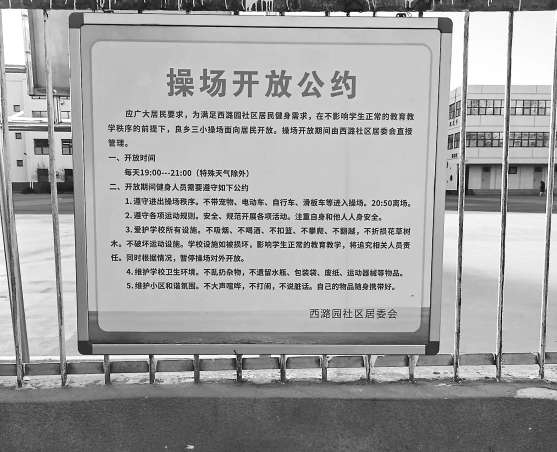 一個個難題得以解決,自今年夏天起,除了刮風(fēng)下雨等特殊天氣,包括周末在內(nèi),每天晚7時至9時,操場都會面向居民開放,運行至今近半年時間。