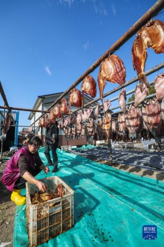 浙江省諸暨市白塔湖湖畔的村鎮(zhèn)居民有冬季曬魚干迎新年的傳統(tǒng)習(xí)俗。臨近年末,當(dāng)?shù)卮迕裼貌稉频那圄~、鳊魚、白條魚等晾曬魚干,迎接新年、增收創(chuàng)收。