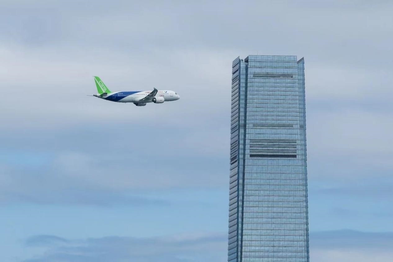·12月16日,國產(chǎn)大飛機(jī)C919飛越香港維多利亞港。