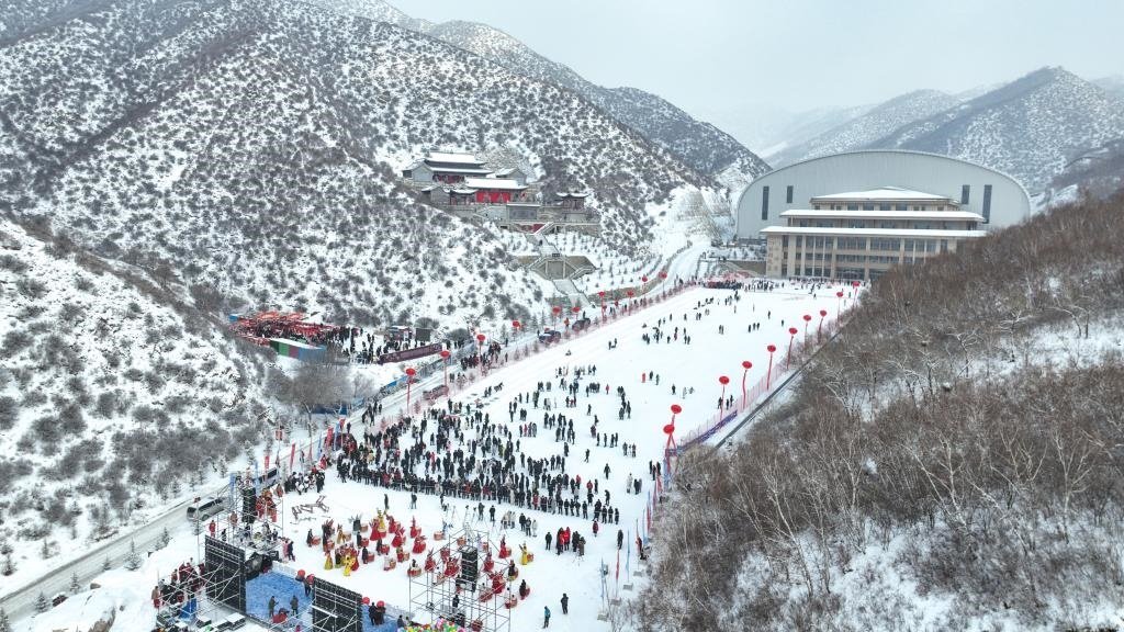 2023年12月30日,游客在內(nèi)蒙古卓資縣林胡古塞景區(qū)參觀游玩(無(wú)人機(jī)照片)。新華社記者 貝赫 攝