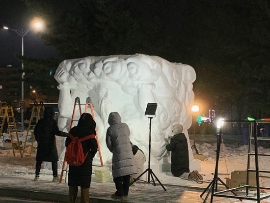 能夠與冰雪“親密接觸”,中國美術(shù)學院的熊竣苓要感謝剛剛在哈爾濱落幕的第十六屆國際大學生雪雕大賽。他所在的團隊由包括他在內(nèi)的4位南方同學組成,他們創(chuàng)作的雪雕作品《盤古開天》獲得了一等獎。這段比賽經(jīng)歷讓第一次去哈爾濱的熊竣苓非常難忘,“最近哈爾濱很火,雖然我是去參加比賽的,但能去哈爾濱一趟,也非常激動了。我記得我們從機場到酒店的路上,透過車窗看到了霧凇,一下子就讓我這個南方人感受到了北方冬天的美?!彼貞?,做雪雕時,他和另外3位同學都既緊張又興奮,“我們都是第一次觸摸雪做雕塑,此前在學校練習時是用泥巴或石膏,跟雪是完全不同的質(zhì)感,所以過程中我們都小心翼翼,非常緊張;同時,我們都是第一次見到這么多雪,太激動了。”