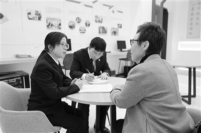 圖為案件承辦人向該案委托代理人深入了解案件情況,共同尋找實質(zhì)解紛之法。