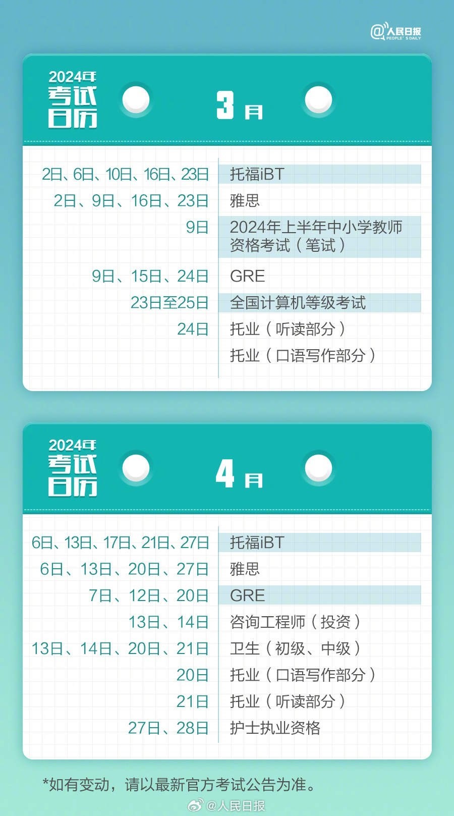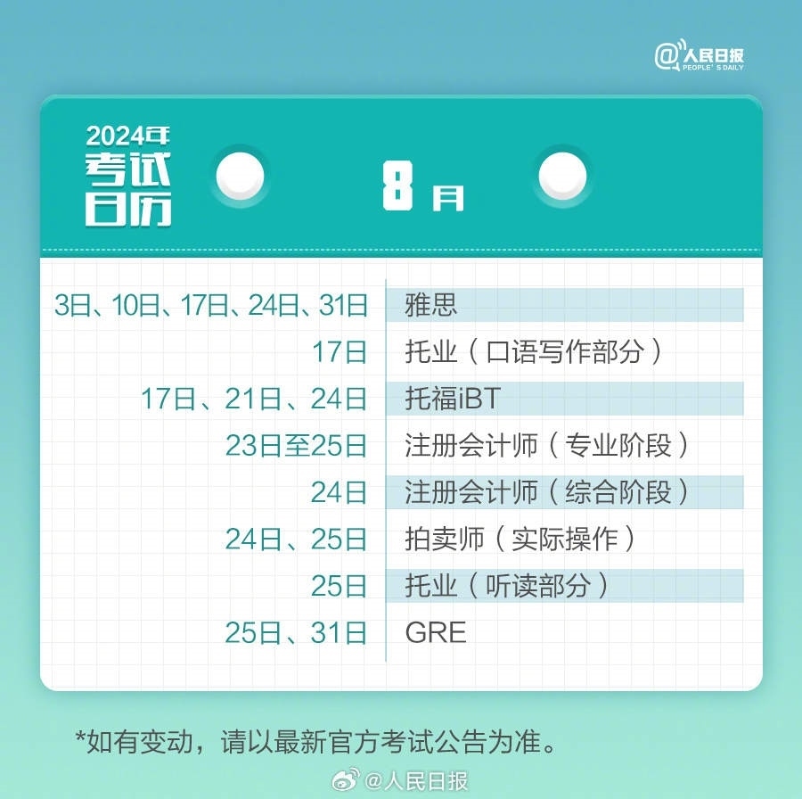 2024年已過(guò)去20多天,你的學(xué)習(xí)考試計(jì)劃開始了嗎?教師資格考試、計(jì)算機(jī)等級(jí)考試、注冊(cè)會(huì)計(jì)師、法律職業(yè)資格……提前計(jì)劃,不留遺憾,為目標(biāo)努力起來(lái)!收好2024考試日歷↓↓一起加油!