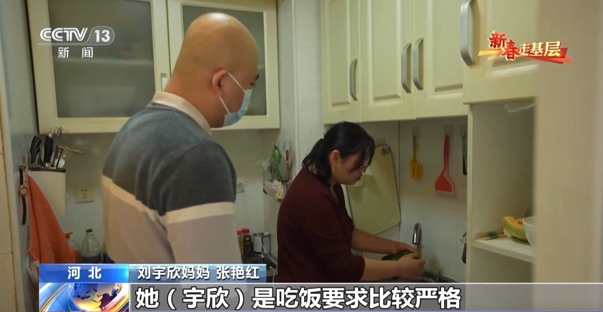劉宇欣媽媽 張艷紅:宇欣吃飯要求比較嚴(yán)格,洗菜的時(shí)候要洗得特別干凈。一般都得洗個(gè)三遍以上才能干凈,因?yàn)橛幸稽c(diǎn)細(xì)菌都不行。感覺(jué)時(shí)間特別緊,她吃完上頓你要準(zhǔn)備下頓的。