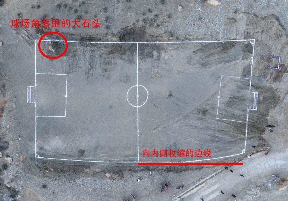 大石頭對(duì)角線位置的球場(chǎng)邊線