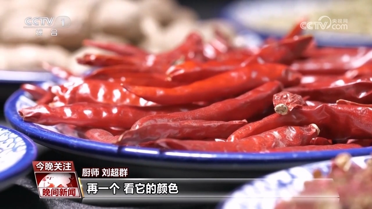 廚師 劉超群:作為我們火鍋雞最主要的原材料之一,這個(gè)(辣椒)主要看兩方面,一是它的辣度,再一個(gè),看它的顏色,這種顏色比較鮮亮的,就證明是新的辣椒。麻椒顆粒的飽滿度,還有表皮的小點(diǎn)是影響它麻度的因素,小點(diǎn)越密集,麻度越高。