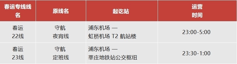 注:上海南站春運(yùn)專線運(yùn)營日期為2月14日至3月5日。