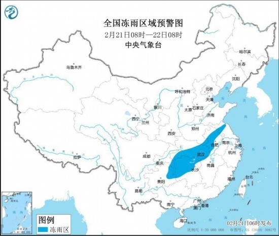 全國凍雨區(qū)域預(yù)警圖(2月21日8時-22日8時)