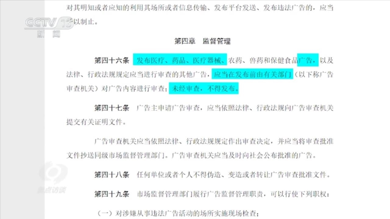 按照我國廣告法第四十六條的規(guī)定,發(fā)布醫(yī)療、藥品、醫(yī)療器械等廣告,應當在發(fā)布前由有關(guān)部門對廣告內(nèi)容進行審查;未經(jīng)審查,不得發(fā)布。也就是說,醫(yī)療廣告應當取得相應的《醫(yī)療廣告審查證明》才能上線。但記者調(diào)查發(fā)現(xiàn),這些醫(yī)美直播帶貨作為一種醫(yī)療廣告均未獲得《醫(yī)療廣告審查證明》。
