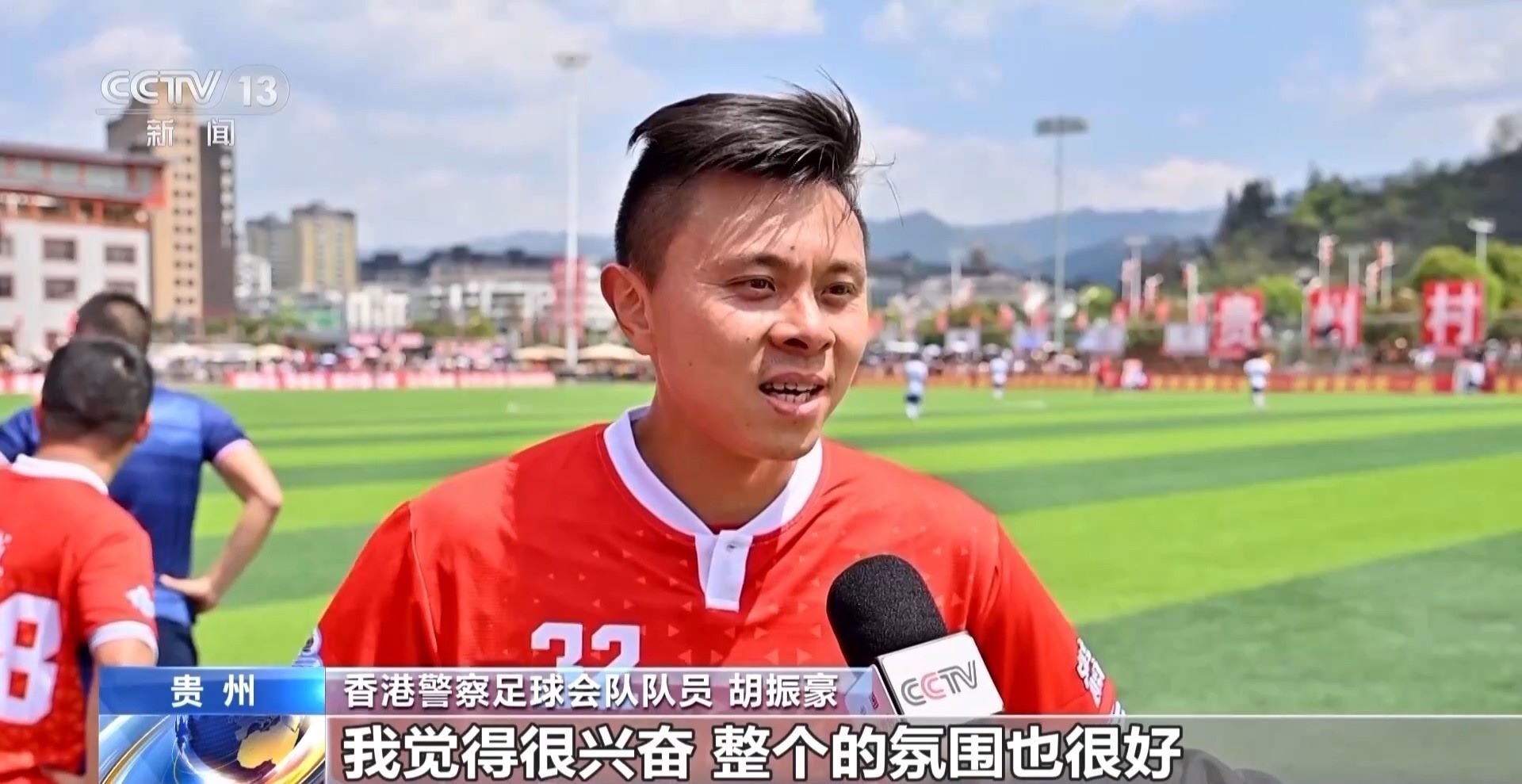 香港警察足球會隊(duì)隊(duì)長 陳憲鈞:這是我們第一次來貴州,給我們的印象很深,人們都很熱情,我們很開心來到這里,因?yàn)樵谙愀畚覀円部催^“村超”的現(xiàn)場,所以我們有機(jī)會來到這里,跟大家一起踢(足球),我覺得非常開心。我們希望可以跟尤其是年輕人多交流,讓他們認(rèn)識我們香港警隊(duì)。