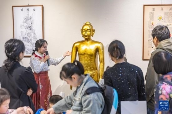 4月6日,醫(yī)生志愿者在“百草創(chuàng)藝”中醫(yī)藥藝術作品展現(xiàn)場為觀眾講解中醫(yī)藥文化知識。