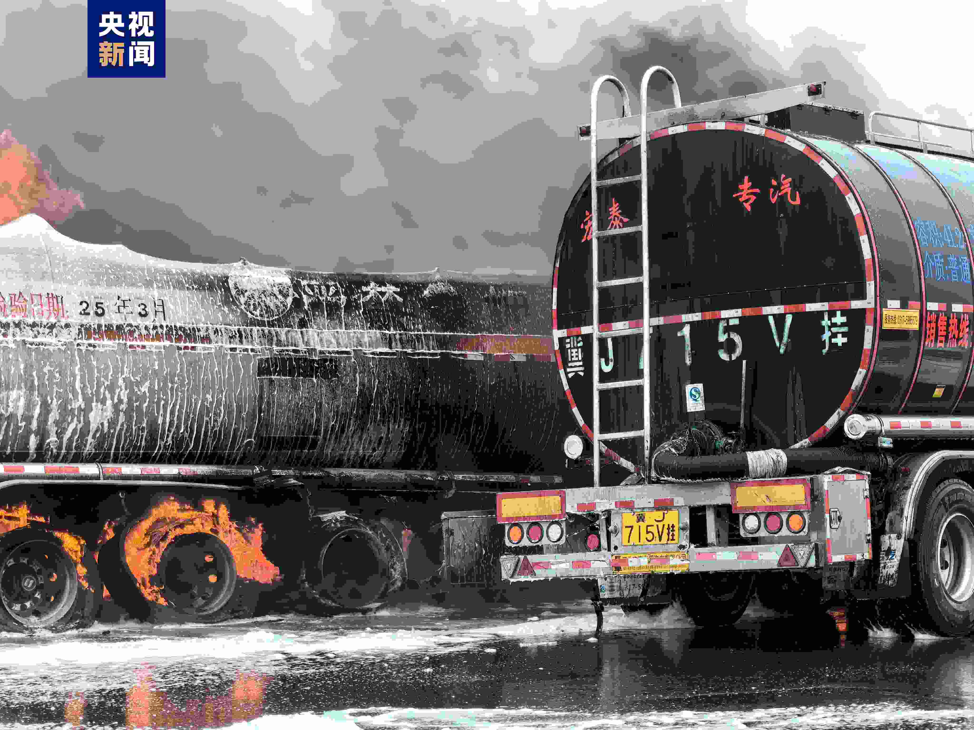 今天(19日)上午,天津市濱海新區(qū)秦濱高速臨港收費(fèi)站出口有兩輛罐車發(fā)生交通事故后起火。經(jīng)偵察,現(xiàn)場(chǎng)為一輛載有潤(rùn)滑油的罐車與一輛載有柴油的罐車相撞,造成兩輛罐車起火。
