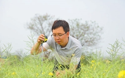 蘇丹在測(cè)量油菜株高。本報(bào)記者 原韜雄攝