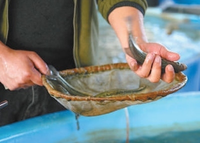 倪闖在查看魚(yú)卵培育情況。方 霞攝