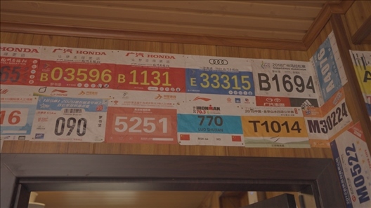 每次跑完馬拉松,羅書堅都會把號碼牌貼在墻上,那是他激勵自己的一種特殊方式。