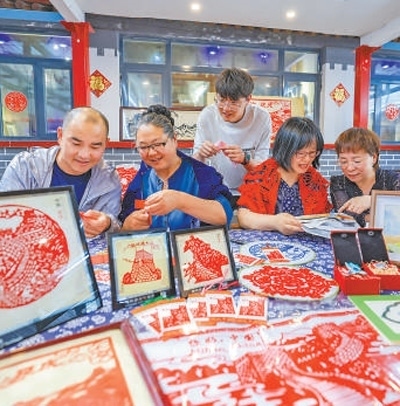 自2018年建成以來,石峽村村史博物館成為村民定期培訓的地方,也逐漸成為游客來石峽村游玩的打卡地之一。博物館以實物、文字、影像等方式展現(xiàn)了村落歷史、非遺項目、居家生活、農(nóng)耕勞作等內容?!拔覀冞€推出了帶有長城元素的布藝、剪紙、羽毛畫等互動體驗項目?!辈┪镳^負責人魏曉蕓說。