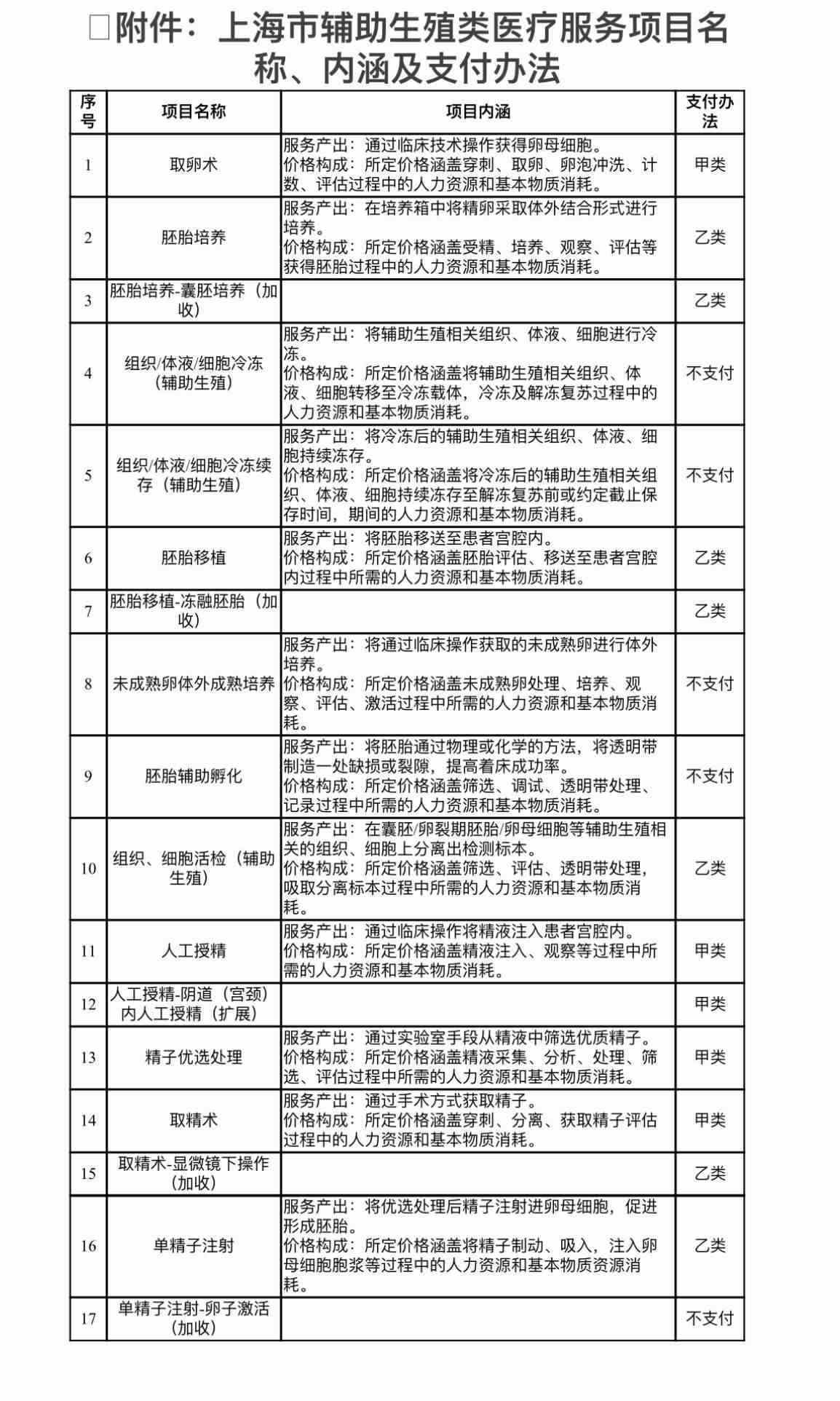 為實施積極生育支持措施,近日,上海市醫(yī)保局會同人力資源社會保障、衛(wèi)生健康部門印發(fā)《關(guān)于將部分治療性輔助生殖技術(shù)項目納入醫(yī)保、工傷保險支付范圍的通知》,將“取卵術(shù)”等12個輔助生殖類醫(yī)療服務(wù)項目納入醫(yī)保支付范圍,自2024年6月1日起執(zhí)行。