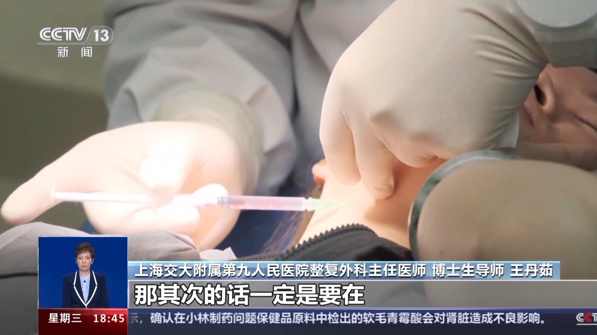 上海交大附屬第九人民醫(yī)院整復(fù)外科主任醫(yī)師、博士生導(dǎo)師 王丹茹:我們接診的大多數(shù)肉毒毒素中毒的患者,事實(shí)上使用的都是非法來源或者不明來源的肉毒毒素產(chǎn)品。一定要在正規(guī)的醫(yī)療機(jī)構(gòu),由具有資質(zhì)的醫(yī)生來做一個(gè)施打和使用。我們認(rèn)為最重要的還是專業(yè)機(jī)構(gòu)、專業(yè)醫(yī)生以及正規(guī)來源的產(chǎn)品。
