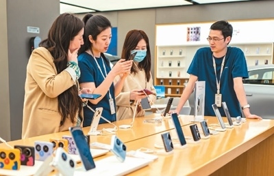 圖為上海華為一家線下門店內,消費者在體驗華為Pura70系列手機。王 初攝(人民視覺)
