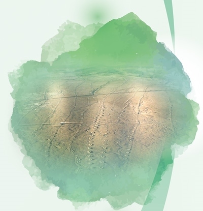 新疆吐魯番坎兒井俯瞰圖。