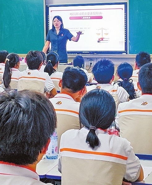 近日,湖北省保康縣人民法院蒲公英法治宣講隊(duì)成員張曉麗走進(jìn)??悼h第一中學(xué),結(jié)合高一新生年齡特點(diǎn),詳細(xì)講解了預(yù)防未成年人犯罪法等法律知識(shí),深入剖析校園暴力、猥褻性侵、網(wǎng)絡(luò)詐騙等危害,強(qiáng)調(diào)學(xué)法、守法、知法、懂法的重要性,引導(dǎo)學(xué)生們樹立正確的法治觀念。圖為張曉麗向同學(xué)們講解法律知識(shí)。(本報(bào)記者 丁俐 本報(bào)通訊員 王韻婕 攝)