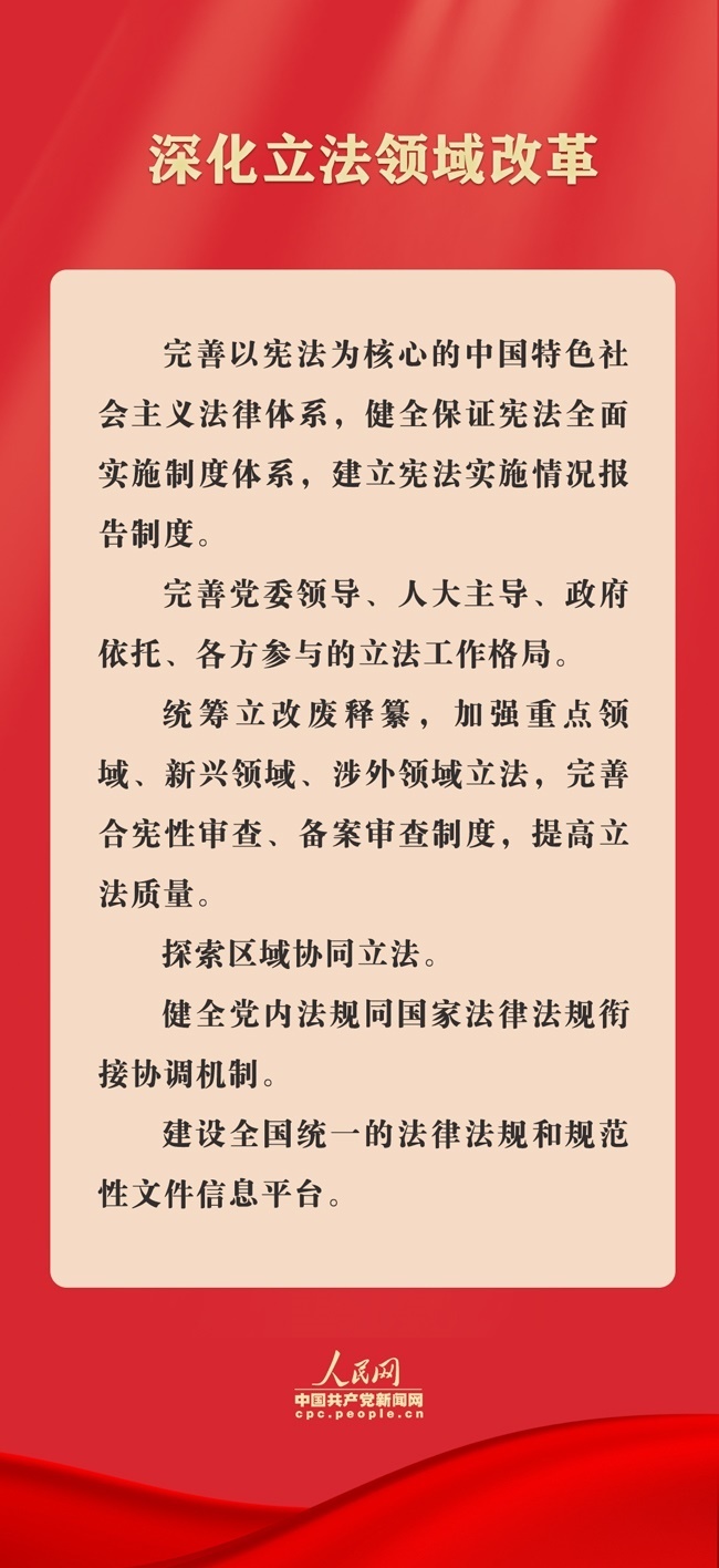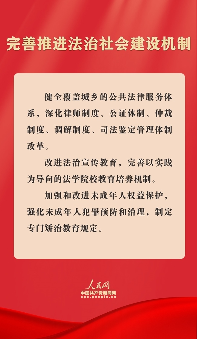 7月21日,《中共中央關(guān)于進(jìn)一步全面深化改革、推進(jìn)中國(guó)式現(xiàn)代化的決定》(以下簡(jiǎn)稱《決定》)全文發(fā)布。其中對(duì)完善中國(guó)特色社會(huì)主義法治體系作出部署,重點(diǎn)圍繞深化立法領(lǐng)域改革、深入推進(jìn)依法行政、健全公正執(zhí)法司法體制機(jī)制、完善推進(jìn)法治社會(huì)建設(shè)機(jī)制、加強(qiáng)涉外法治建設(shè)等方面,提出了法治領(lǐng)域改革任務(wù)要求。