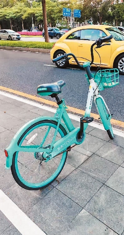 廣東深圳福田區(qū)深南大道上停放于劃定區(qū)域的共享單車。本報記者 盧澤華攝