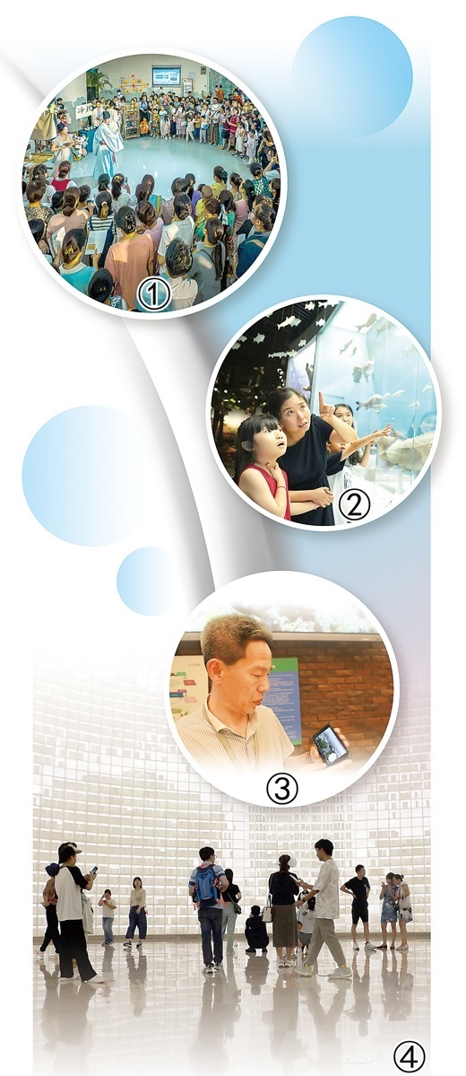 圖①:常州博物館舉辦的“常博夢(mèng)華錄”活動(dòng)現(xiàn)場(chǎng)。常州博物館供圖 圖②:重慶自然博物館內(nèi),觀眾正在參觀。秦廷富攝 圖③:大連自然博物館工作人員在手機(jī)上查看館外排隊(duì)情況。本報(bào)記者 劉佳華攝 圖④:游客在山東省曲阜市孔子博物館參觀。王齊勝攝(影像中國(guó))