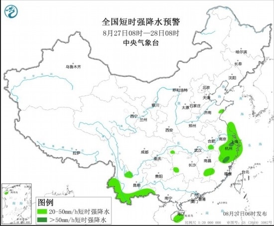 中新網8月27日電 據中央氣象臺網站消息,中央氣象臺8月27日6時發(fā)布強對流天氣藍色預警:預計8月27日8時至28日8時,內蒙古地區(qū)東北部、江淮東部、江南東北部和南部、西南地區(qū)東南部等地的部分地區(qū)將有8級以上雷暴大風或冰雹天氣;黃淮東部、江漢西部、江淮西南部和東部、江南中東部、西南地區(qū)南部、華南南部等地的部分地區(qū)將有小時雨量大于20毫米的短時強降水天氣,其中,浙江北部和南部、福建北部等地的部分地區(qū)小時雨量大于50毫米,最大可達80毫米以上。
