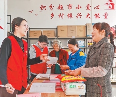 德化人心江西省瑞昌市高豐鎮(zhèn)建立文明積分制度,村民參加志愿服務(wù)等活動(dòng)可以獲取積分,并到“鄉(xiāng)風(fēng)文明超市”兌換生活日用品。魏東升攝(人民視覺(jué))