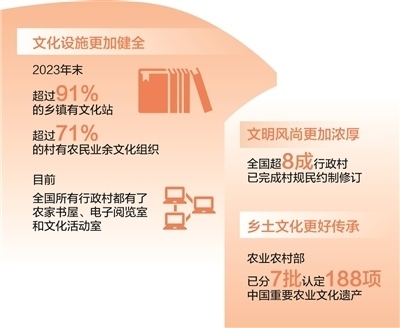 新時(shí)代以來(lái),各地區(qū)各部門深入推進(jìn)農(nóng)村精神文明建設(shè)。加快完善鄉(xiāng)村文化設(shè)施,健全農(nóng)村公共文化體系,農(nóng)家書(shū)屋、鄉(xiāng)村文化禮堂等打通文化惠民“最后一公里”;發(fā)展群眾性文體活動(dòng),廣泛開(kāi)展“村BA”“村超”“村晚”等,豐富鄉(xiāng)村精神文化生活,展現(xiàn)鄉(xiāng)親們積極向上的精氣神;培育挖掘鄉(xiāng)土文化人才,引導(dǎo)文化工作者、科普工作者、文化志愿者等投身鄉(xiāng)村文化建設(shè);賡續(xù)鄉(xiāng)村優(yōu)秀傳統(tǒng)文化,把對(duì)非遺的保護(hù)傳承和開(kāi)發(fā)利用有機(jī)結(jié)合,將藝術(shù)與古村落、古民居的活化利用有機(jī)結(jié)合;持續(xù)推進(jìn)農(nóng)村移風(fēng)易俗,革除高價(jià)彩禮、人情攀比、厚葬薄養(yǎng)、鋪張浪費(fèi)等陳規(guī)陋習(xí),反對(duì)迷信活動(dòng),推動(dòng)形成文明鄉(xiāng)風(fēng)、良好家風(fēng)、淳樸民風(fēng);健全鄉(xiāng)村治理體系,有效發(fā)揮村規(guī)民約作用,推廣文明積分等方式,激勵(lì)農(nóng)民自覺(jué)踐行文明新風(fēng)……這些舉措為加強(qiáng)農(nóng)村精神文明建設(shè)提供了有力抓手,推動(dòng)現(xiàn)代文明理念融入鄉(xiāng)村生活方方面面,為推進(jìn)鄉(xiāng)村全面振興注入新動(dòng)能。
