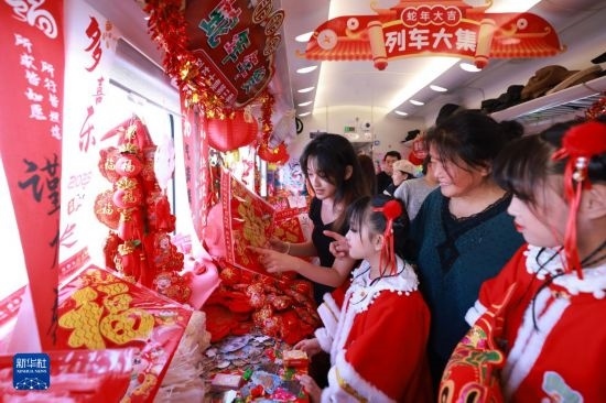 當日,黑龍江開啟2025年首個“列車大集”,在齊齊哈爾開往滿洲里的4187次列車上,乘客購年貨、品民俗、觀看非遺表演,在歸家的旅途中感受濃濃的年味。