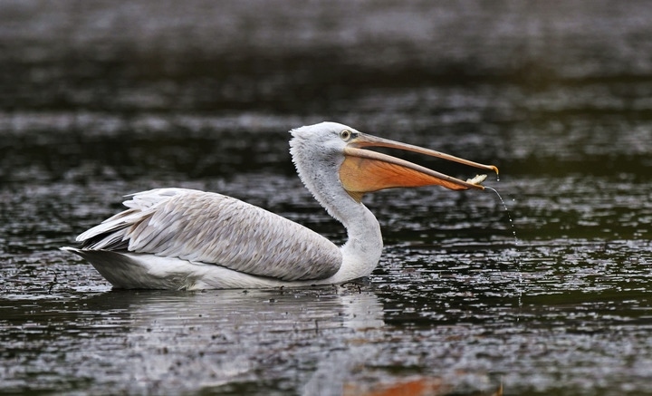這是2024年11月16日在甘肅省隴南市西和縣黃江水庫拍攝的卷羽鵜鶘。新華社發(fā)(高峰 攝)