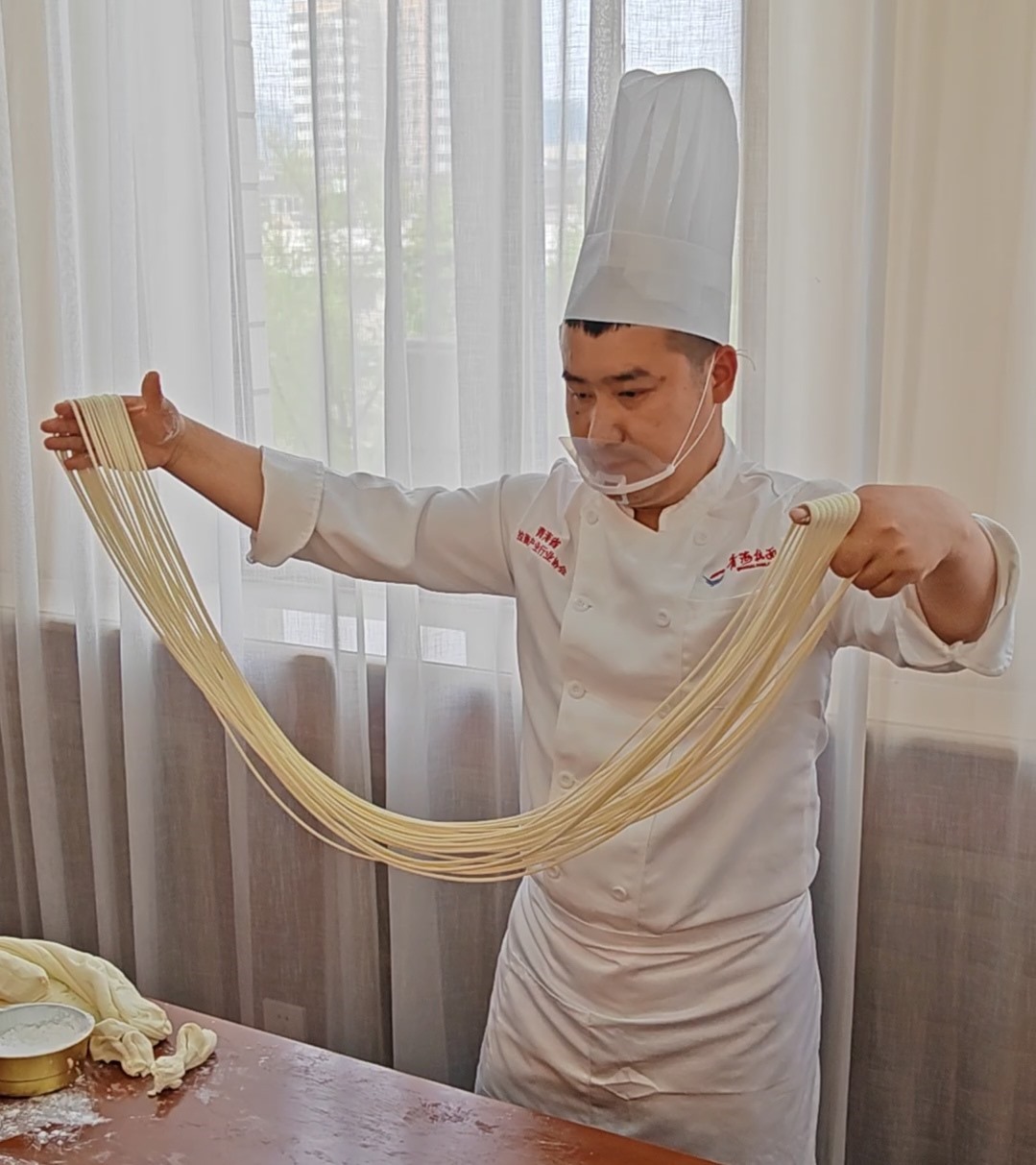 來自青海省本地的拉面師傅還在現(xiàn)場展示了拉面技術(shù)。據(jù)了解,拉面是4000多年來中華民族對(duì)美食的探索和傳承的結(jié)晶。2002年,在青海省海東市民和回族土族自治縣的喇家遺址中發(fā)現(xiàn)了距今4000多年前的一根面條,是迄今為止發(fā)現(xiàn)的世界上最古老的面條,被稱作“世界第一面”,也說明中國是面條的發(fā)源地。