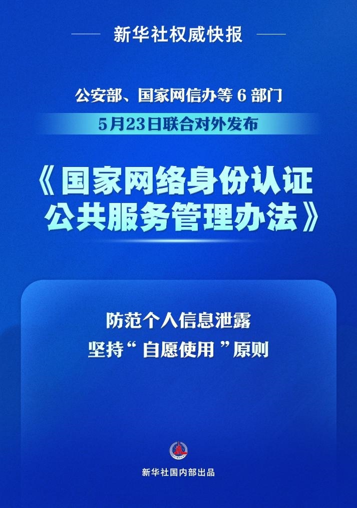 破解公民身份信息網(wǎng)絡(luò)泄露難題,加強(qiáng)個人信息保護(hù)。公安部、國家網(wǎng)信辦等6部門5月23日聯(lián)合對外發(fā)布《國家網(wǎng)絡(luò)身份認(rèn)證公共服務(wù)管理辦法》,推進(jìn)國家網(wǎng)絡(luò)身份認(rèn)證公共服務(wù)建設(shè),進(jìn)一步推廣應(yīng)用公共服務(wù)。