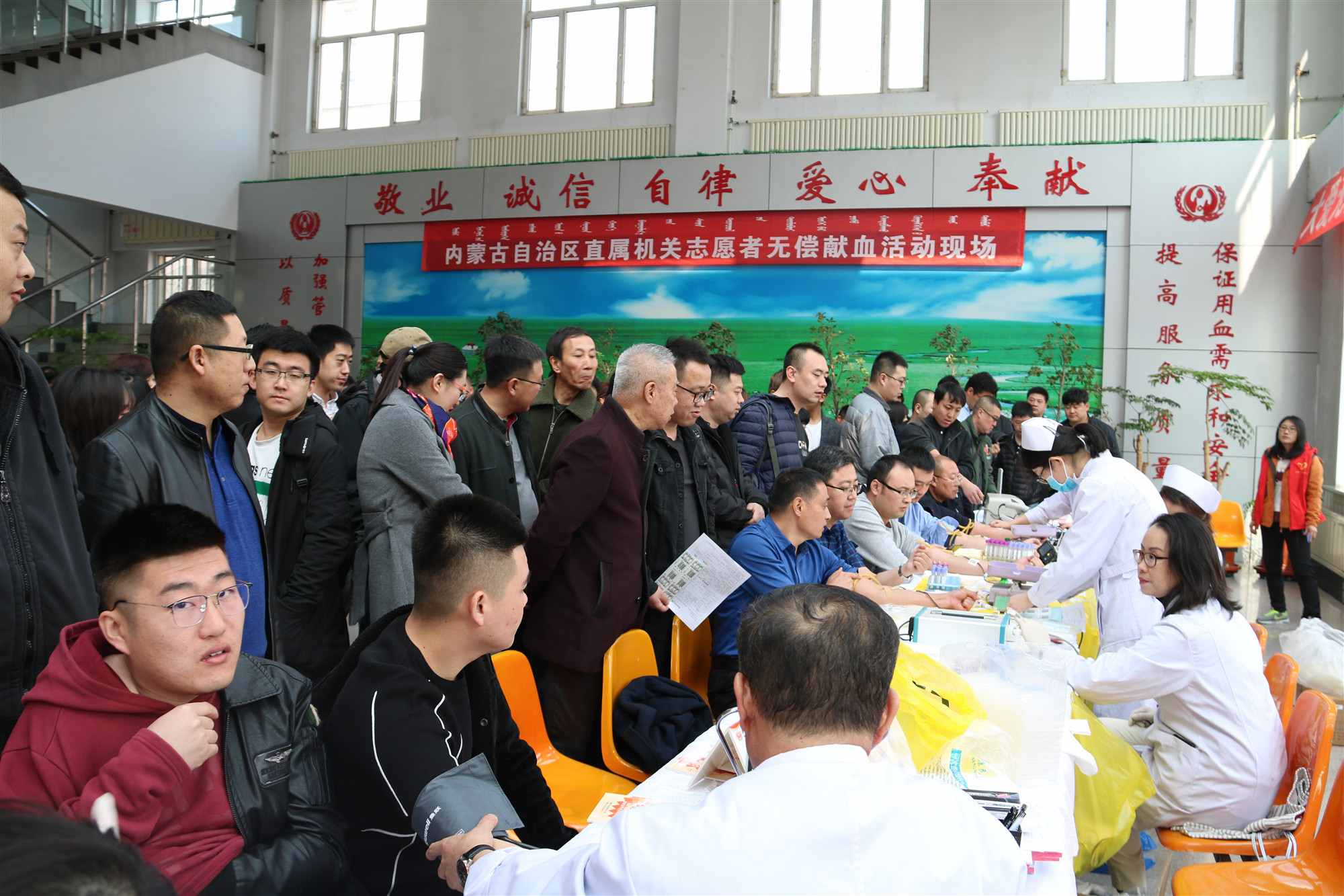 活動(dòng)中,自治區(qū)直屬機(jī)關(guān)工委組織區(qū)直機(jī)關(guān)80余家單位800多人積極參加了無(wú)償獻(xiàn)血活動(dòng),其中457人成功獻(xiàn)血15.31萬(wàn)毫升,區(qū)直機(jī)關(guān)140余名志愿者開(kāi)展了應(yīng)急救護(hù)培訓(xùn)。