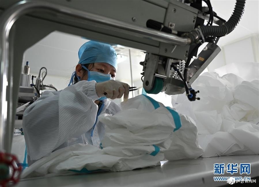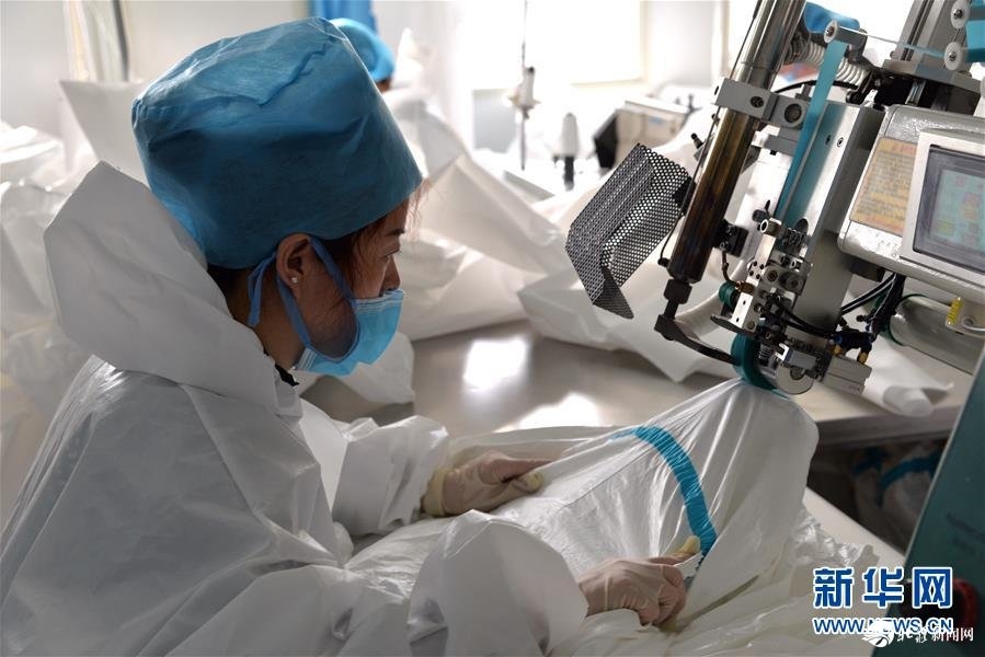 呼和浩特欣龍康醫(yī)療器械有限責(zé)任公司是一家員工不足20人的小型企業(yè),也是內(nèi)蒙古為數(shù)不多能生產(chǎn)醫(yī)用防護(hù)服的企業(yè)之一。新冠肺炎疫情發(fā)生后,公司從1月24日(除夕)就組織員工復(fù)產(chǎn),24小時(shí)連續(xù)作業(yè),生產(chǎn)無菌醫(yī)用防護(hù)服和隔離服。目前,該企業(yè)每天生產(chǎn)防護(hù)服約400套,全部用于內(nèi)蒙古防治新冠肺炎的一線醫(yī)護(hù)人員。 新華社記者 徐欽 攝