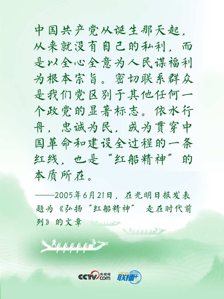 過端午,賽龍舟。龍舟這項(xiàng)傳統(tǒng)運(yùn)動(dòng),象征著中華民族的拼搏、堅(jiān)韌、團(tuán)結(jié),承載著深植在民族基因里的愛國(guó)主義之魂?!爸邸弊肿怨乓詠碓谥腥A傳統(tǒng)文化中都有著深刻寓意。“依水行舟,忠誠(chéng)為民”“逆水行舟,不進(jìn)則退”......習(xí)近平總書記曾多次以“舟”為喻闡釋思想,寄情言志。央視網(wǎng)《聯(lián)播+》特進(jìn)行梳理,讓我們沿著總書記指引的方向,團(tuán)結(jié)奮進(jìn),砥礪前行?! ?/p>